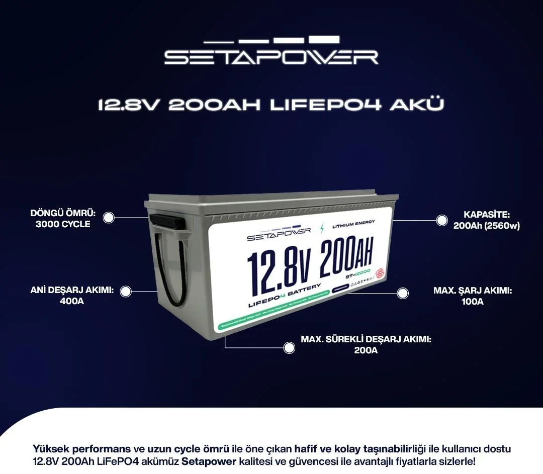 Setapower 12.8V 200AH LiFePO4 Lityum Akü
