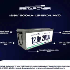 Setapower 12.8V 400AH Bluetooth LiFePO4 Lityum Akü